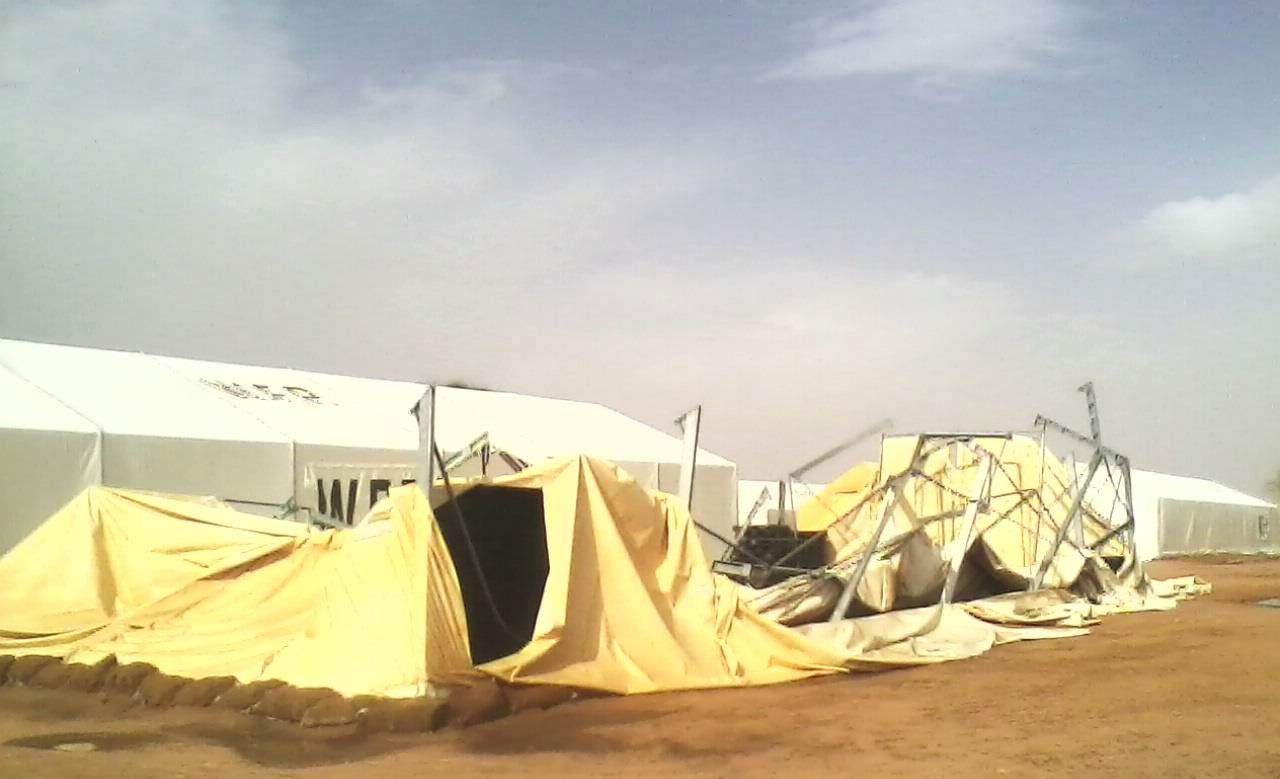 Accompagné d’un vent violent, cette pluie a causé quelques dégâts tant bien à Amleyouna : des troncs d’arbres cassés, des murs écroués, des toits envolés… Même le camp de réfugiés de Gaga n’était pas épargné : une des salles du centre de santé construite en sheetting est tombée ainsi qu’un magasin du PAM.